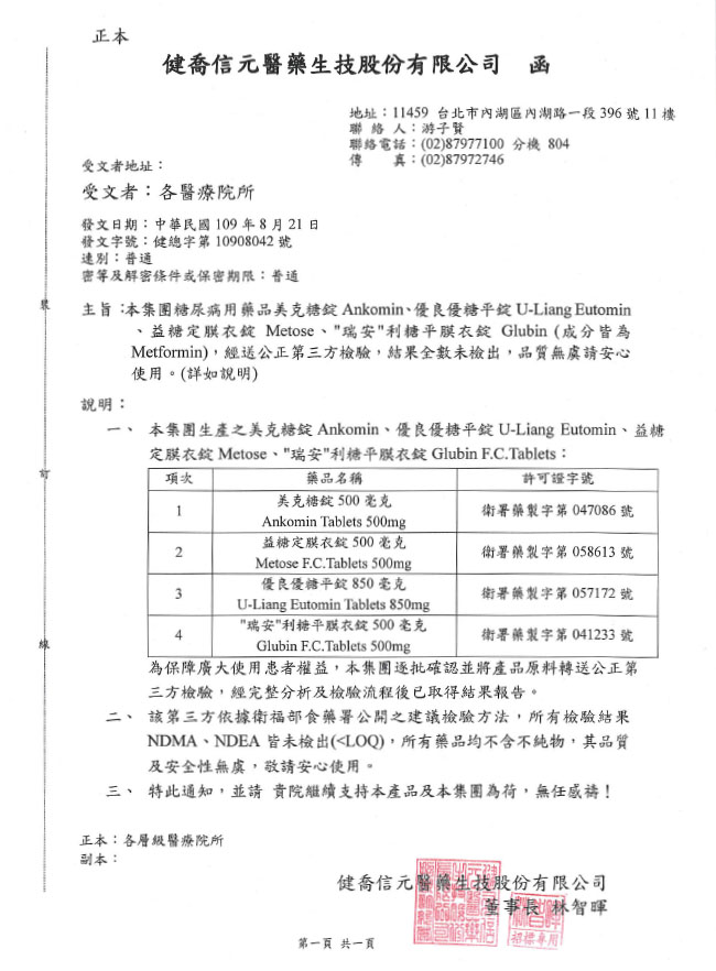首頁 > 最新消息 > {檢測通知} 健喬信元糖尿病用藥公告